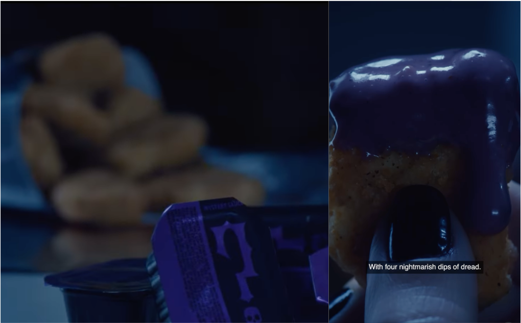 最大的賣點則是四款神秘的限定「驚悚沾醬」,每份餐隨機附上兩種,顧客無法自行挑選,只能按下「立即訂購」的按鈕,然後聽天由命。沾醬的名字像是「這會刺痛你」(This Will Sting)或「大錯特錯」(Grave Mistake),不只增添了緊張感,還讓一頓平凡晚餐搖身一變成為一場未知冒險。這不但呼應劇中主角星期三對未知的偏愛,也成功激發消費者重複購買、蒐集四款沾醬的動力。